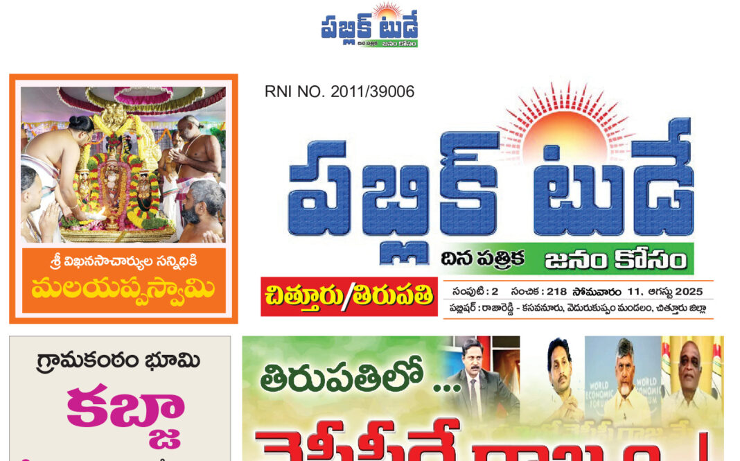 Tirupati Chittoor News Paper News Paper Tirupati chittoor Edition 15 August 2025 By kbharathca - August 15, 2025 0 462 FacebookTwitterPinterestWhatsApp Select Date Download PDF Start Clipping Share Cancel Previous Page 0 of 0 Next × Open Download Facebook Twitter WhatsApp