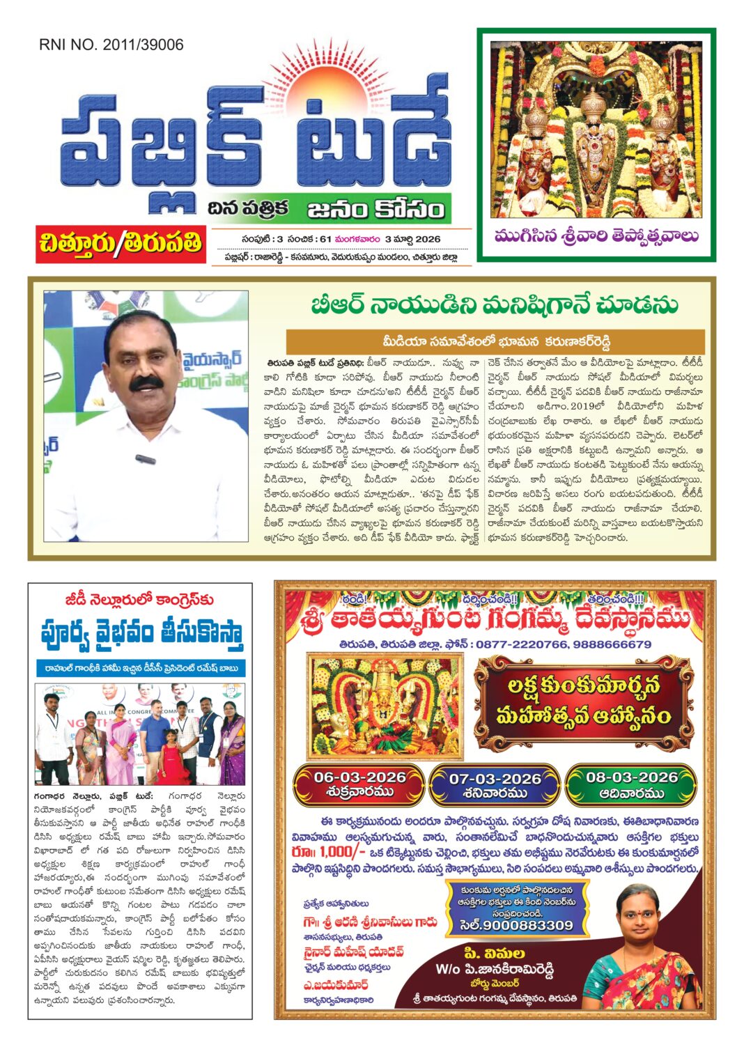 Tirupati Chittoor News Paper PUBLIC TODAY Tirupati chittoor 03 MARCH 2026 By Public Today - August 18, 2025 0 5858 FacebookTwitterPinterestWhatsApp Select Date Download PDF Start Clipping Share Cancel Previous Page 0 of 0 Next × Open Download Facebook Twitter WhatsApp