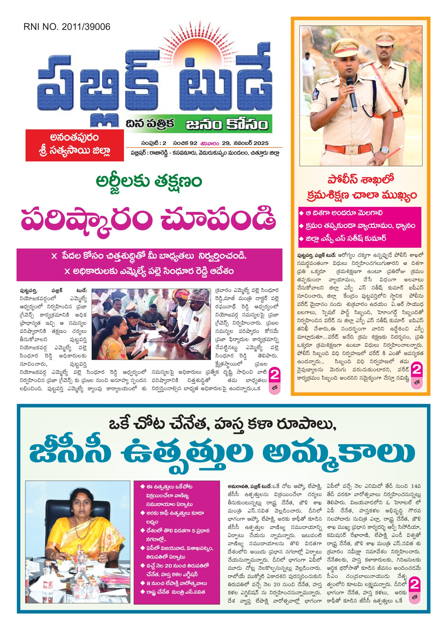 Ananthapur News Paper PUBLIC TODAY Ananthapur 29 NOVEMBER 2025 By Public Today - August 29, 2025 0 1028 FacebookTwitterPinterestWhatsApp Select Date Download PDF Start Clipping Share Cancel Previous Page 0 of 0 Next × Open Download Facebook Twitter WhatsApp